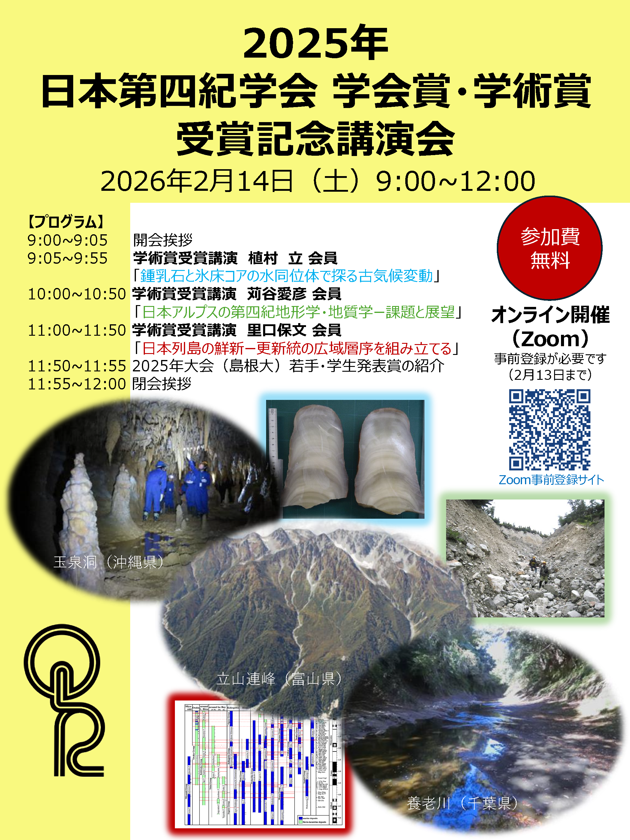 2025年日本第四紀学会 学会賞・学術賞 受賞記念講演会の開催